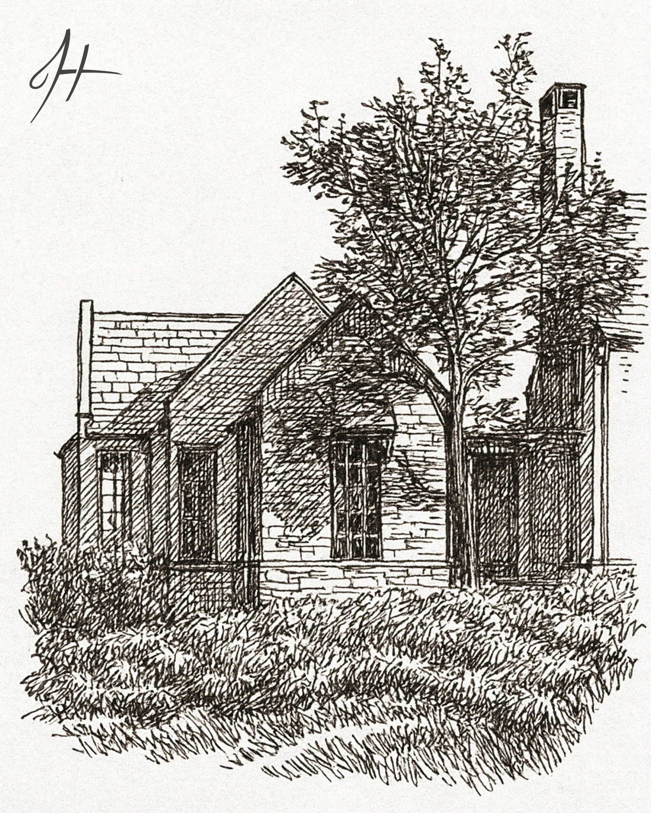 This 12,000 square foot Franklin, Tennessee residence has a stucco and stone facade, slate roof, and most notably features a glass enclosed bridge–suspended off the ground–connecting the private primary suite to the rest of the house.